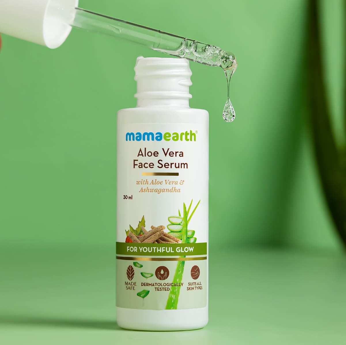 Yes, it is. Aloe Vera and Ashwagandha are rich sources of antioxidants, which help fight free radicals and retain the skin’s youthful glow. However, choosing a gentle and toxin-free formulation when buying face serum with Ashwagandha and Aloe Vera is important. For example, you may try Mamaearth’s MadeSafe-certified Aloe Vera Face Serum. It contains the goodness of Aloe Vera, Ashwagandha, Niacinamide, and Tangerine Peel Extract, which even out the skin, refine pores, and boost collagen. It is toxin-free and thus comes free from harmful chemicals like SLS and mineral oils.