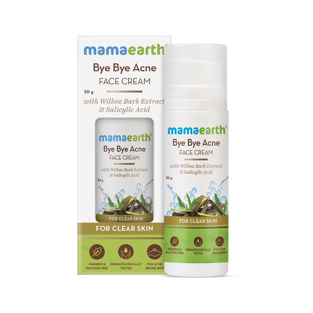 Crafted with the natural goodness of Willow Bark Extract and the power of Salicylic Acid, Bye Bye Acne Face Cream effectively unclogs pores, removes dead skin cells, and reduces sebum production. Thanks to Neem & Soybean, it also soothes inflammation & irritation effectively.