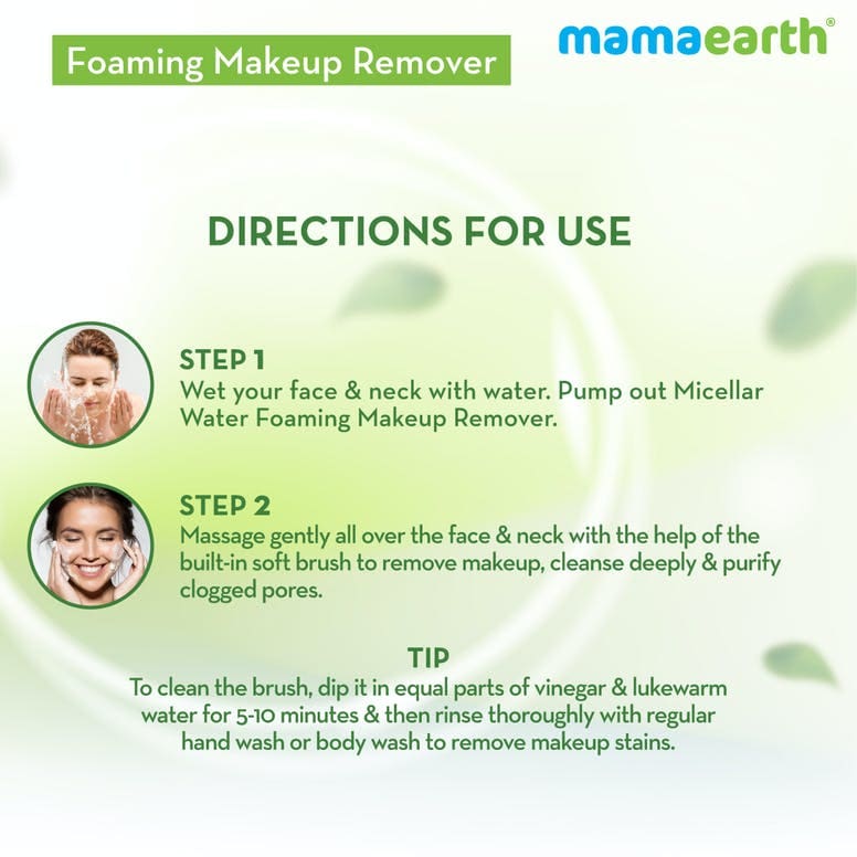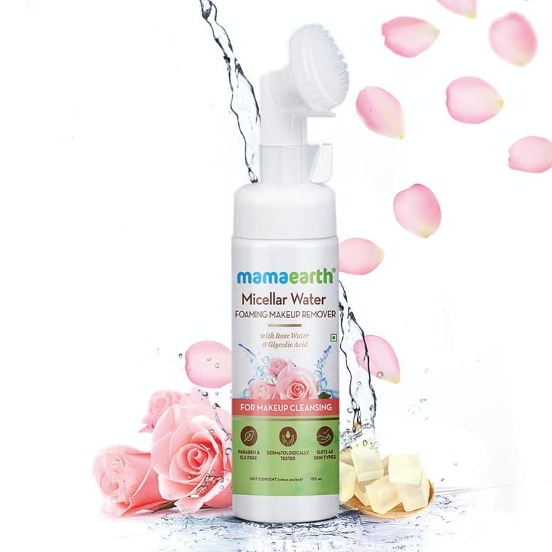 Well, say hello to your new favorite makeup product – Mamaearth Micellar Water Foaming Makeup Remover that comes with a built-in brush. It removes makeup like magic without irritating your precious skin. The built-in-brush makes it as easy as – pump, massage and wash! Enriched with Micellar Water – a potent but gentle mix of natural ingredients like glycerin and rose water, our makeup remover with its built-in brush will leave you with cleansed and glowing skin.
