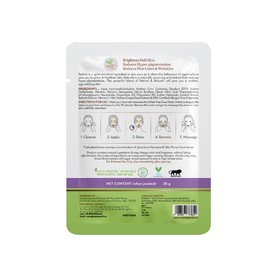 The goodness of Retinol & Bakuchi in the sheet mask helps you achieve that radiant glow. They keep away early signs of aging and fine lines.
